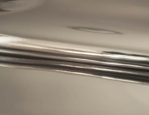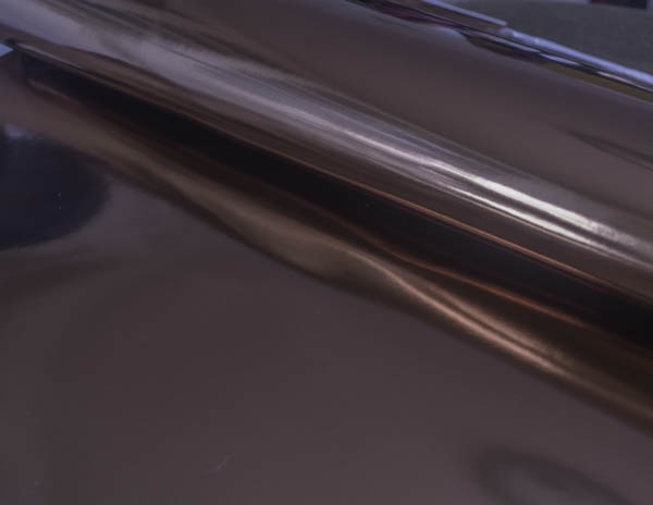Mirror to lakier gładki poliuretanowy. Faktura materiału jest gładka, lakierowana i błyszcząca. Na lakier nałożona jest folia lustrzana, czyli dająca efekt lustra. Kolory są bardzo zróżnicowane. Materiał jest dość miękki w chwycie i sztywny w zakresie rozciągliwości oraz ma właściwości wodoodporne.
