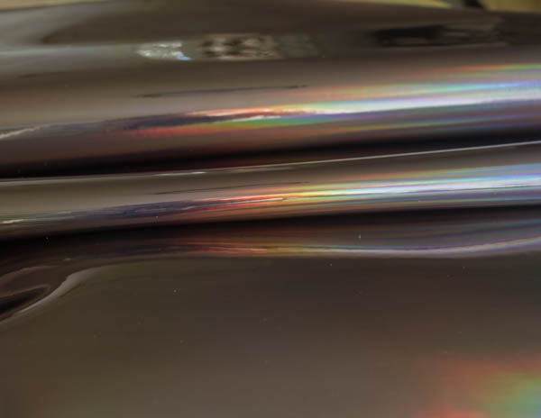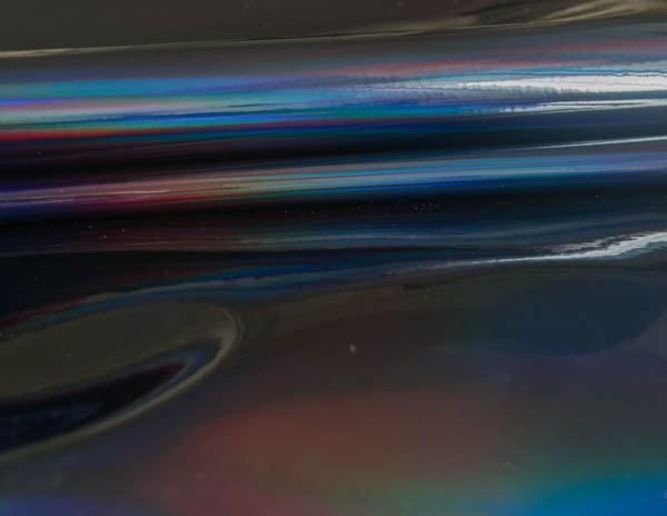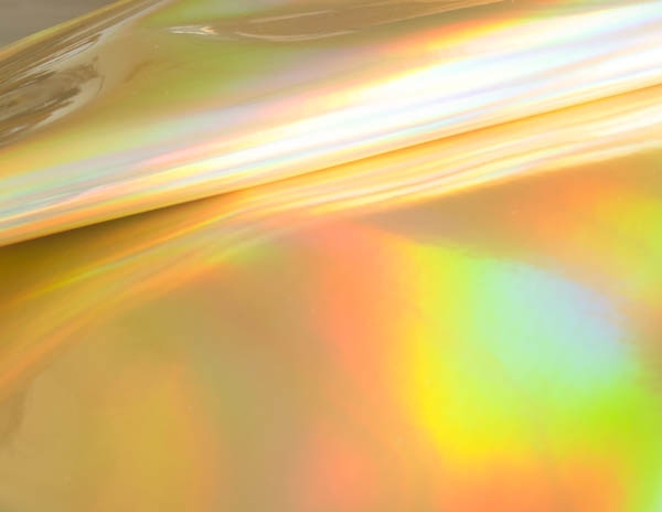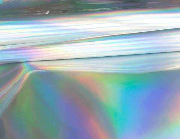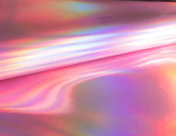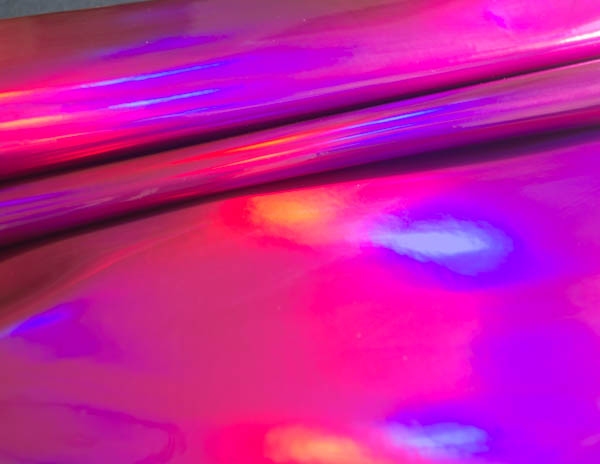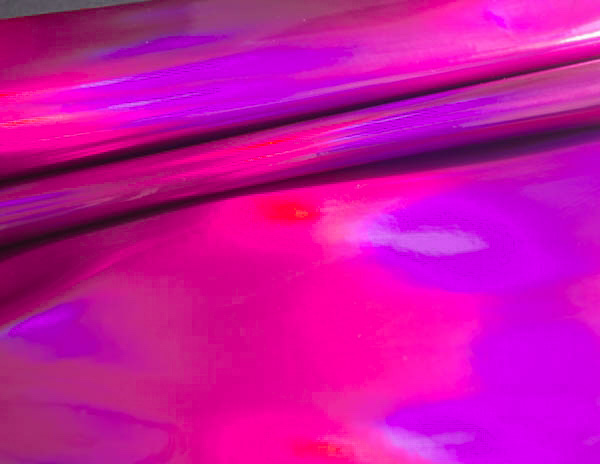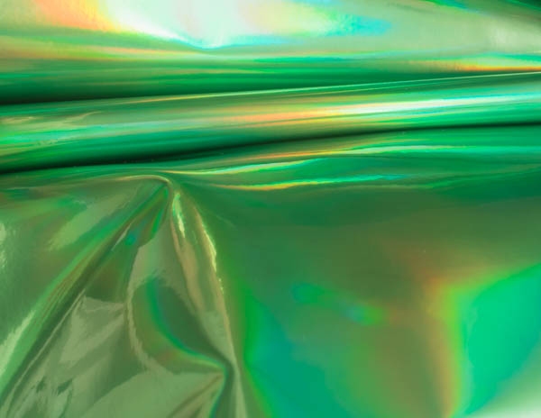 Rainbow to lakier gładki powlekany poliuretanem. Faktura materiału jest błyszcząca, lakierowana i charakteryzuje ją folia holograficzna nadająca tkaninie różne tęczowe kolory.